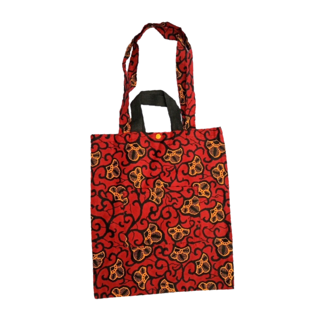 Shop in style with our eco-friendly tote bags available in vivid African print designs.